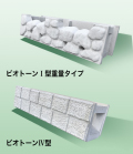 | ブロックの左右方向はボルトにより連結され,上下方向は凹凸のかみ合わせ構造なので土圧や流速に対して強固な護岸を構築できます。ビオトーンⅠ型の開口窓は、緑化を目的と下場合には植生の繁茂できる面積を増大させ、継続的な植生回復が期できます。魚巣を目的とした場合には充填された割栗石により多様な空隙が形成され、魚類や昆虫等の様々な水生生物の生息場所となります。 |
